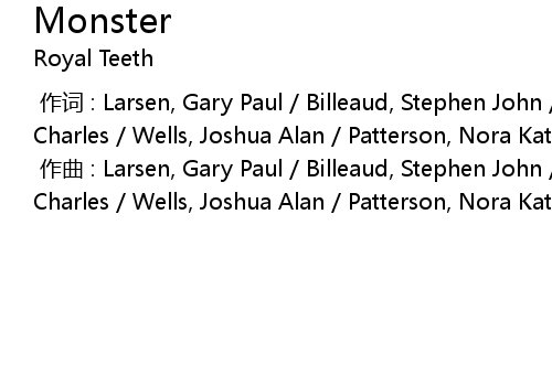 | [00:00.000] | 作曲 : Larsen, Gary Paul / Billeaud, Stephen John / Hefner, Josh Charles / Wells, Joshua Alan / Patterson, Nora Katharine / Poe, Andrew Martin |