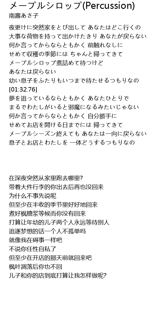 | [02:19.70] | メープルシーズン終えても あなたは一向に戻らない |