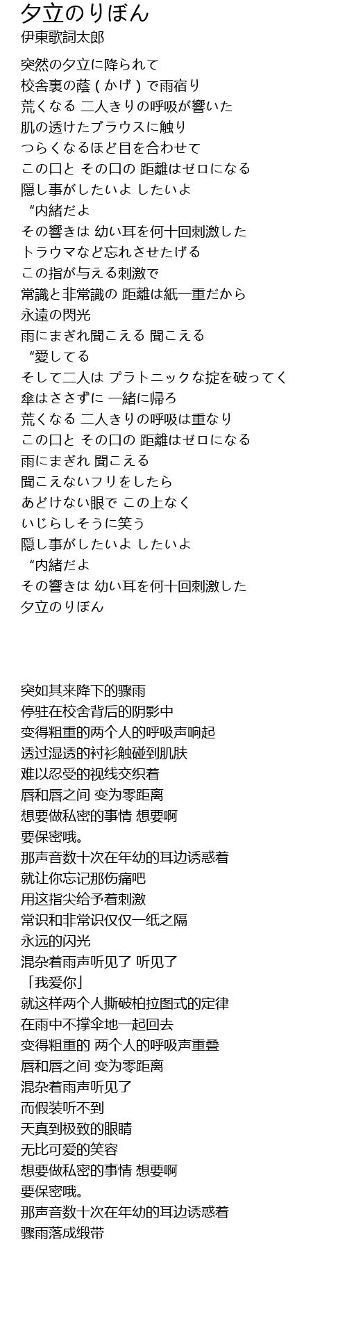 | [00:35.41] | 荒くなる 二人きりの呼吸が響いた |
