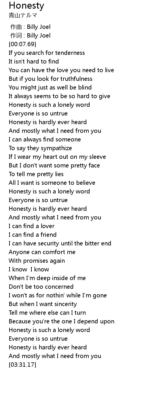 | [03:01.06] | Honesty is such a lonely word |