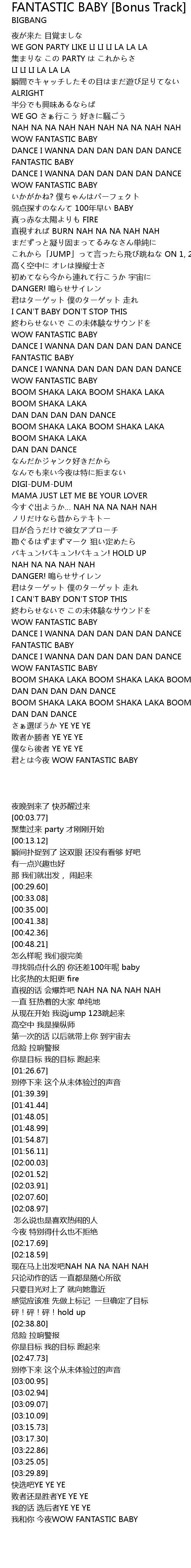 | [03:09.07] | FANTASTIC BABY |