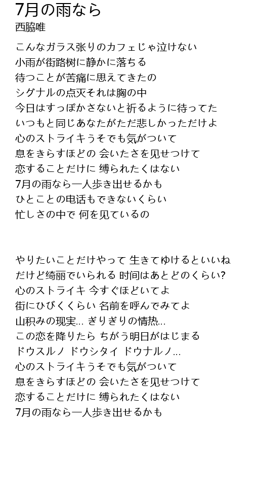 | いつもと同じあなたがただ悲しかっただけよ | |