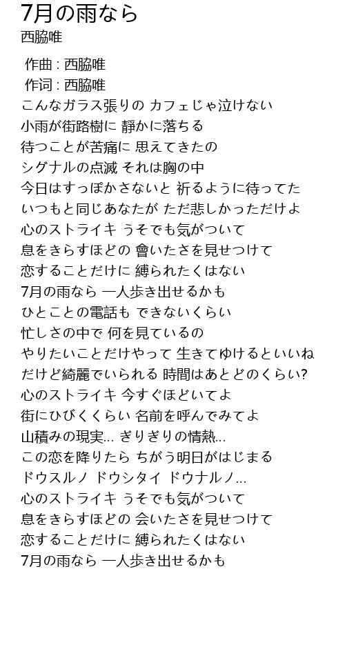 | [01:40.580] | 7月の雨なら 一人歩き出せるかも |