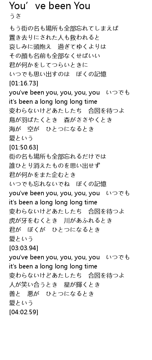 | [02:34.64] | it' s been a long long long time |