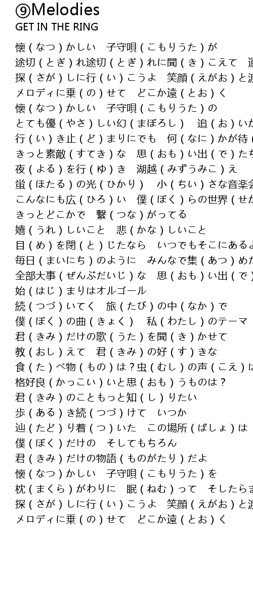 | [01:07] | メロディに乗(の)せて どこか遠(とお)く |