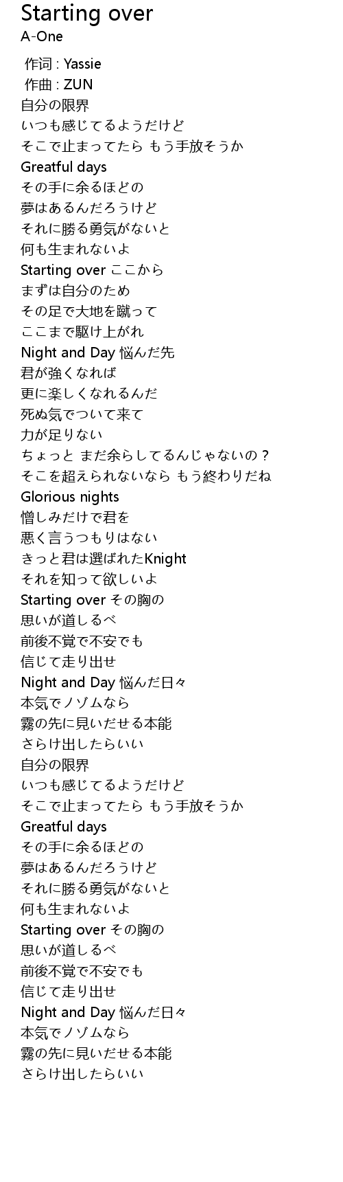 | [04:20.26] | Night and Day 悩んだ日々 |