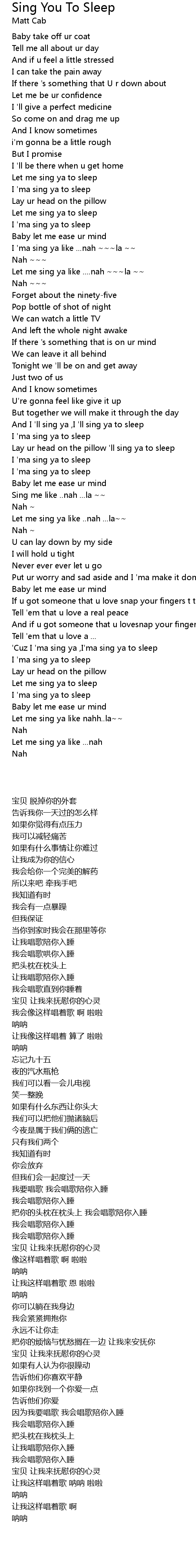 'Cuz I 'ma sing ya ,I'ma sing ya to sleep |