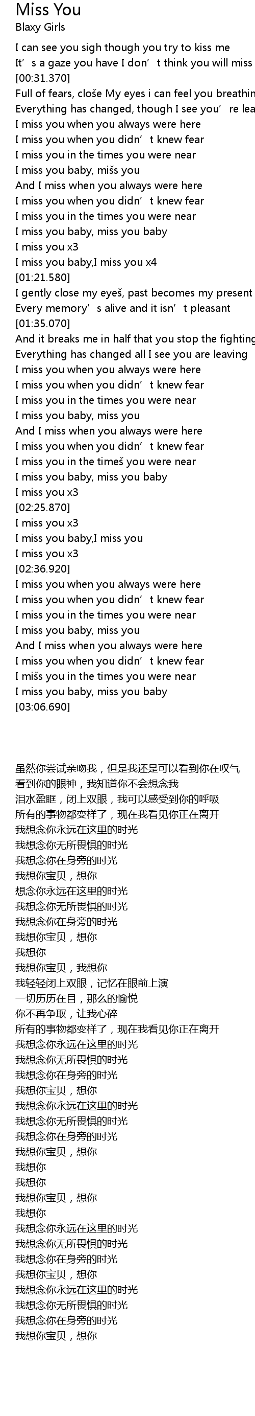 | [01:13.650] | I miss you baby,I miss you x4 |