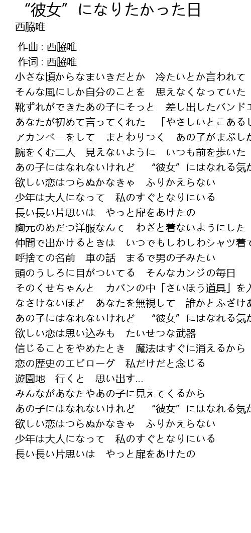 | [02:44.57] | あの子にはなれないけれど “彼女”にはなれる気がした |