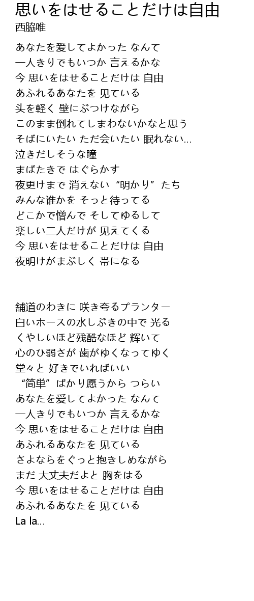今 思いをはせることだけは 自由 |