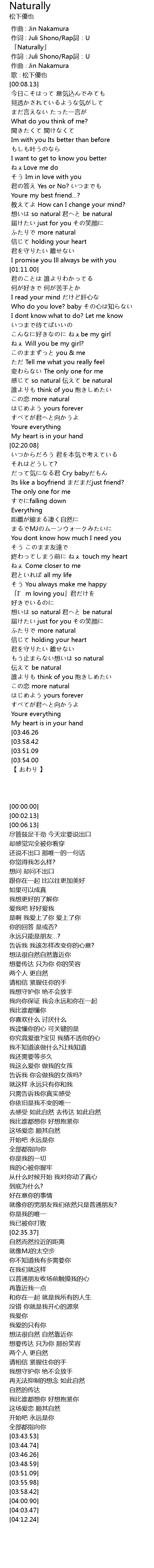 | [00:00.00] | 「Naturally」 |