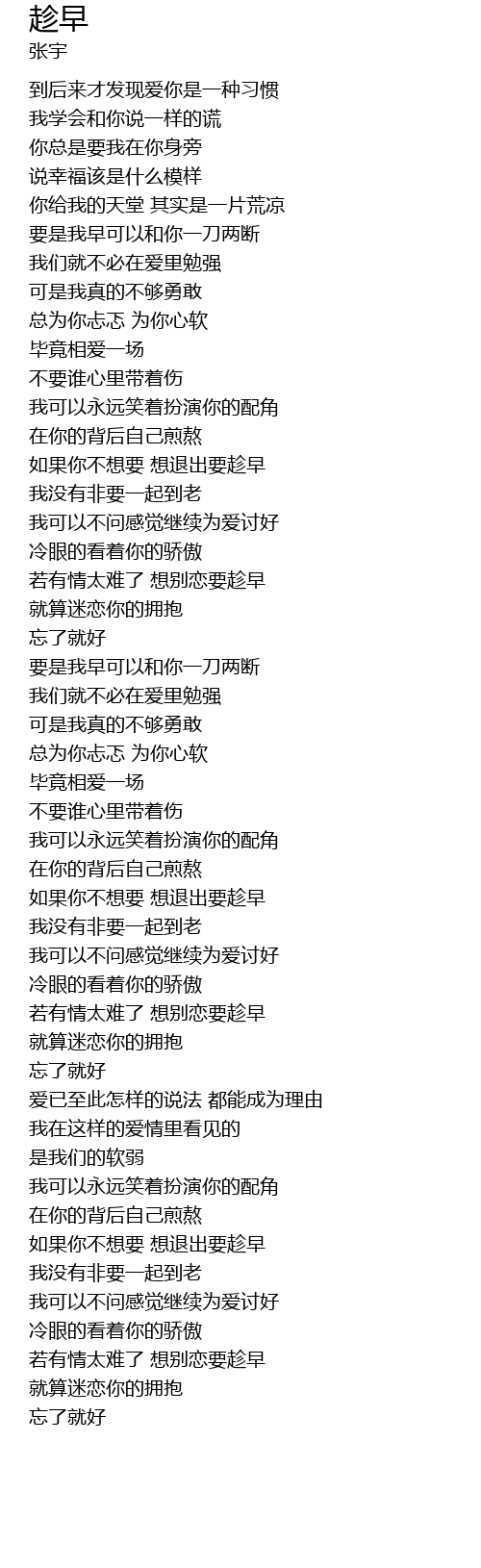 | [04:29.499] | ruò yǒu qíng tài nán le xiǎng bié liàn yào chèn zǎo |
