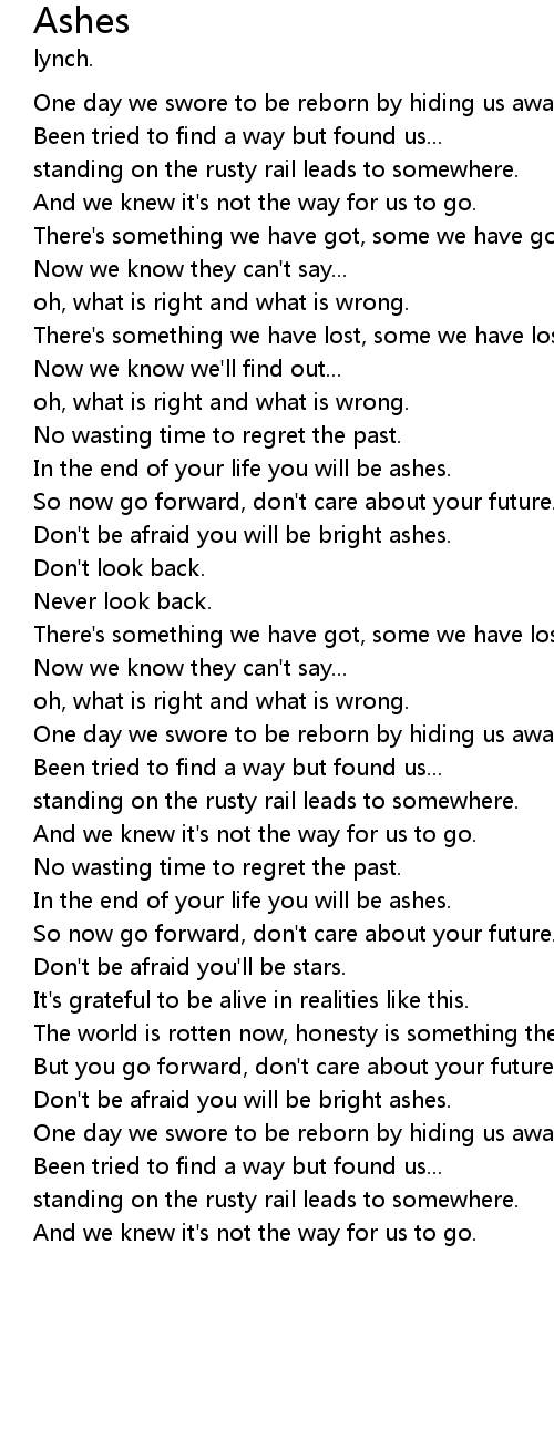 | Don't be afraid you will be bright ashes. | |