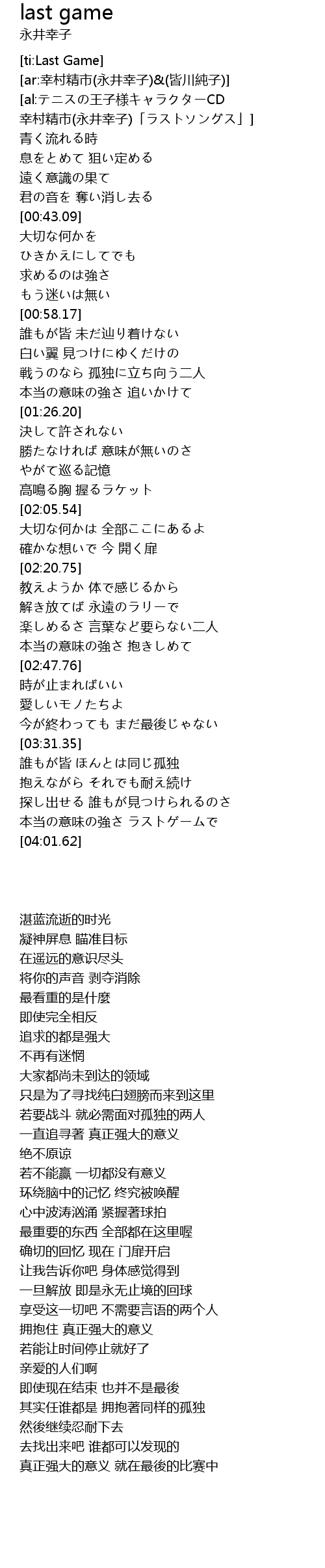 | [03:54.01] | 本当の意味の強さ ラストゲームで |