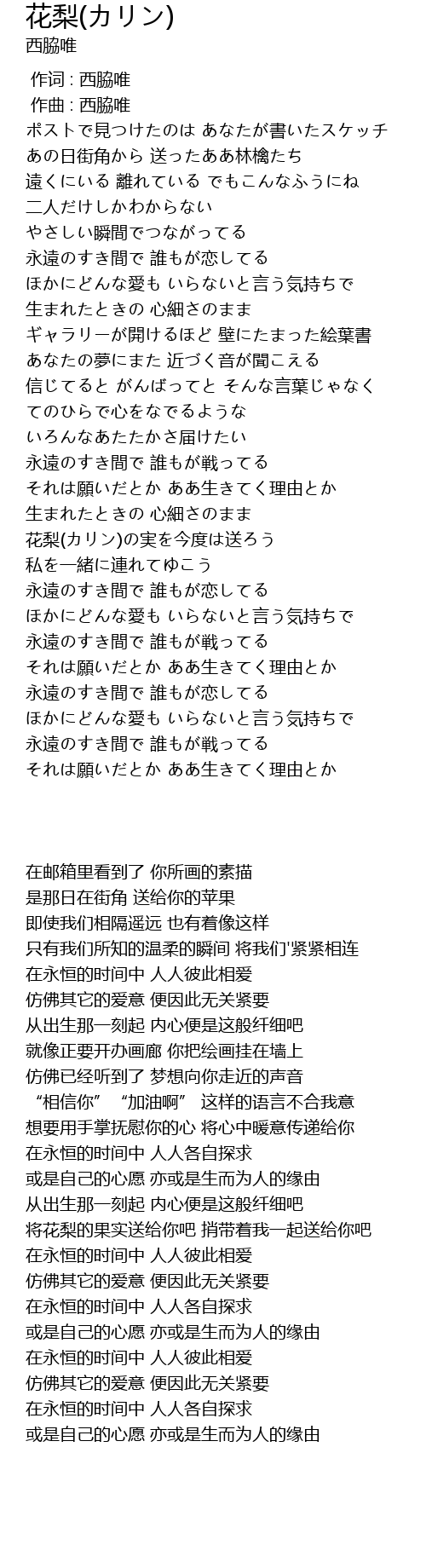 | [00:00.000] | 作词 : 西脇唯 |