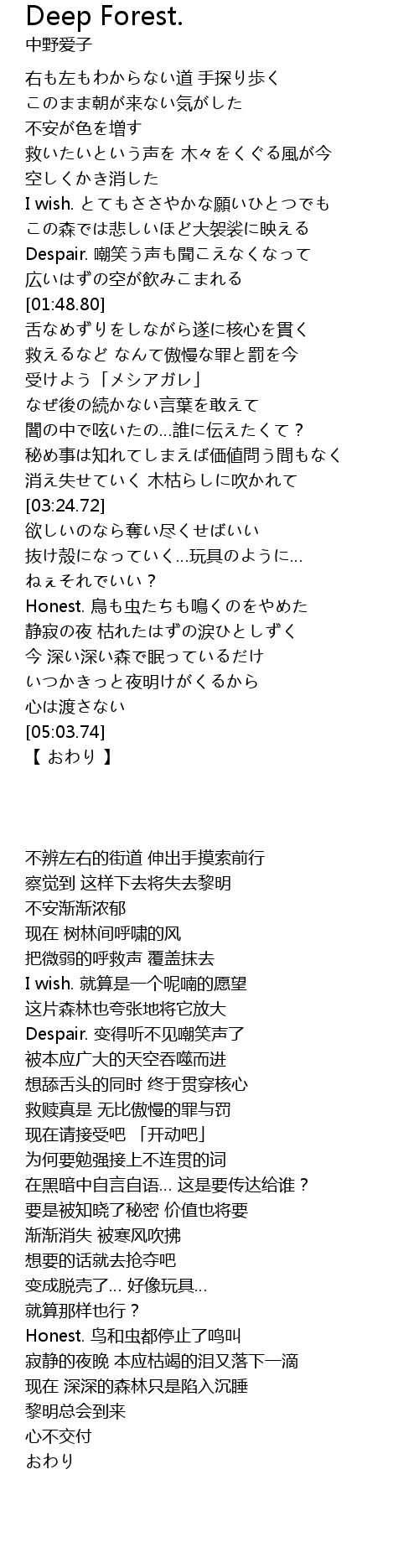 | [04:10.31] | Honest. 鳥も虫たちも鳴くのをやめた |