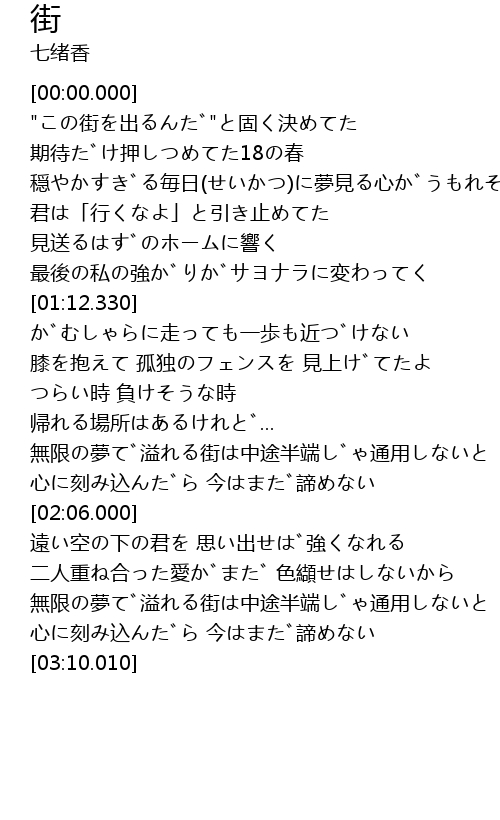 | [00:23.760] | "この街を出るんだ"と固く決めてた |