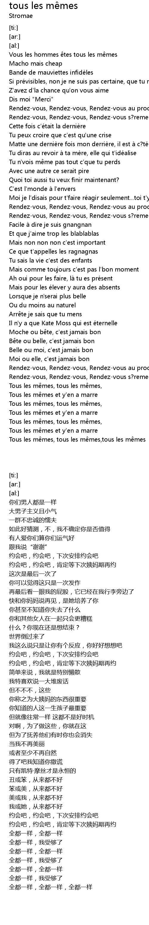 | [03:01.76] | Tous les m mes et y' en a marre |