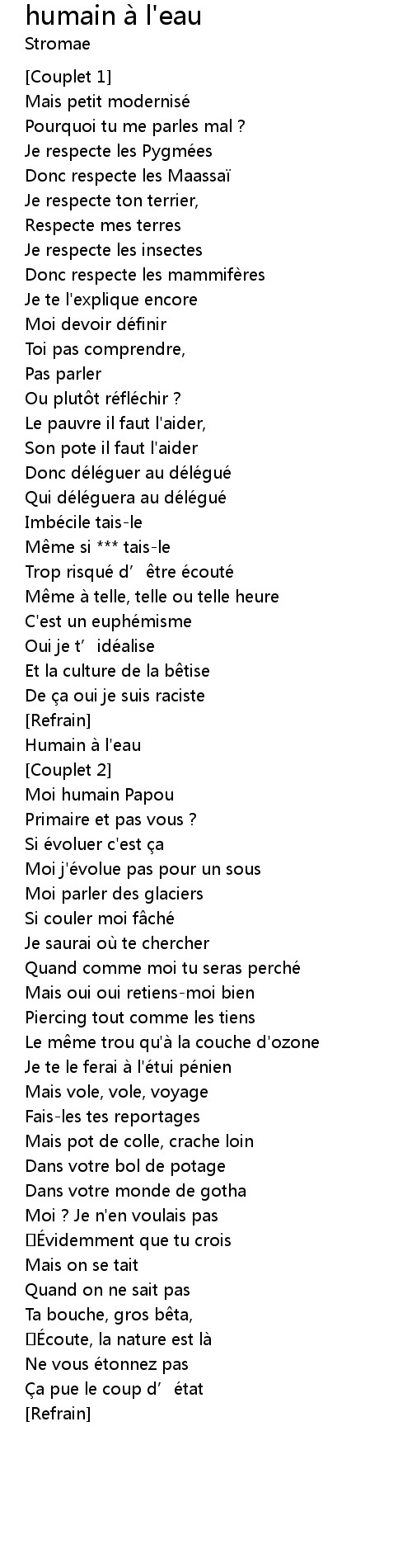 | Song | humain à l'eau |