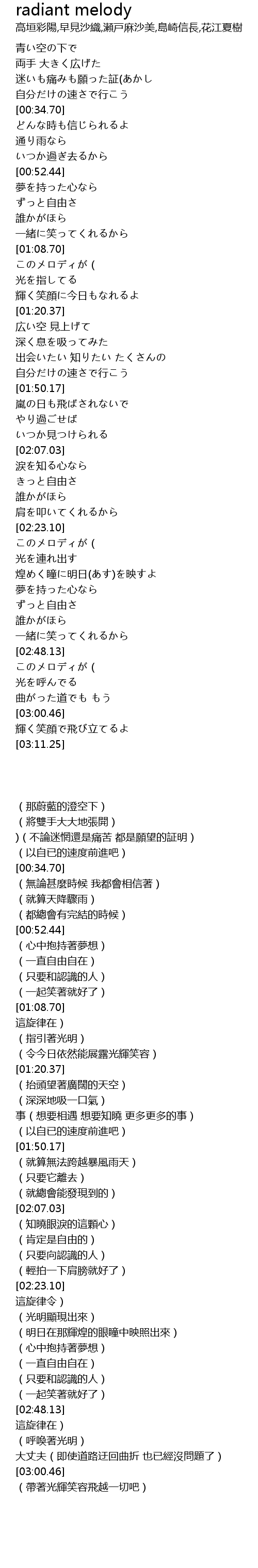 | [03:01.79] | 輝く笑顔で飛び立てるよ |