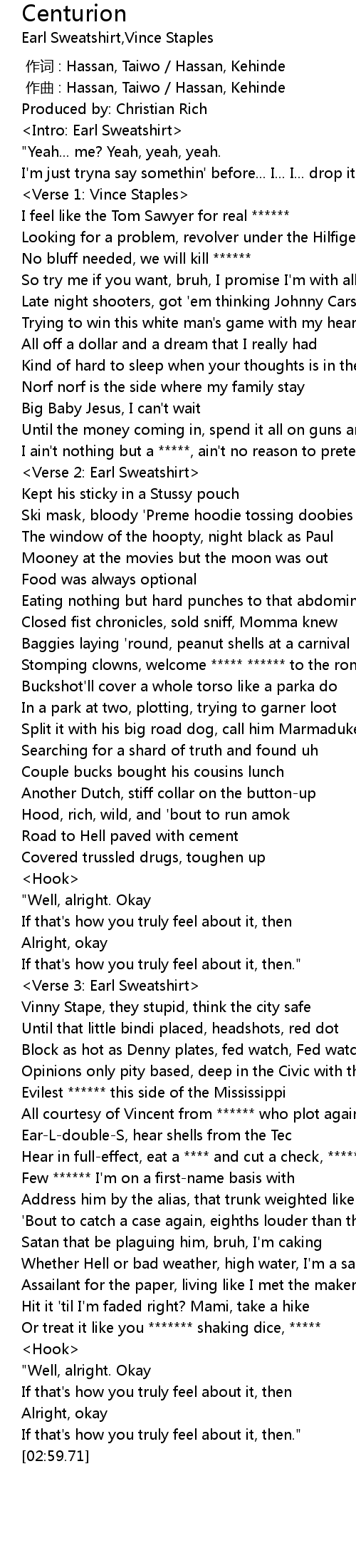 | [01:57.10] | Verse 3: Earl Sweatshirt |