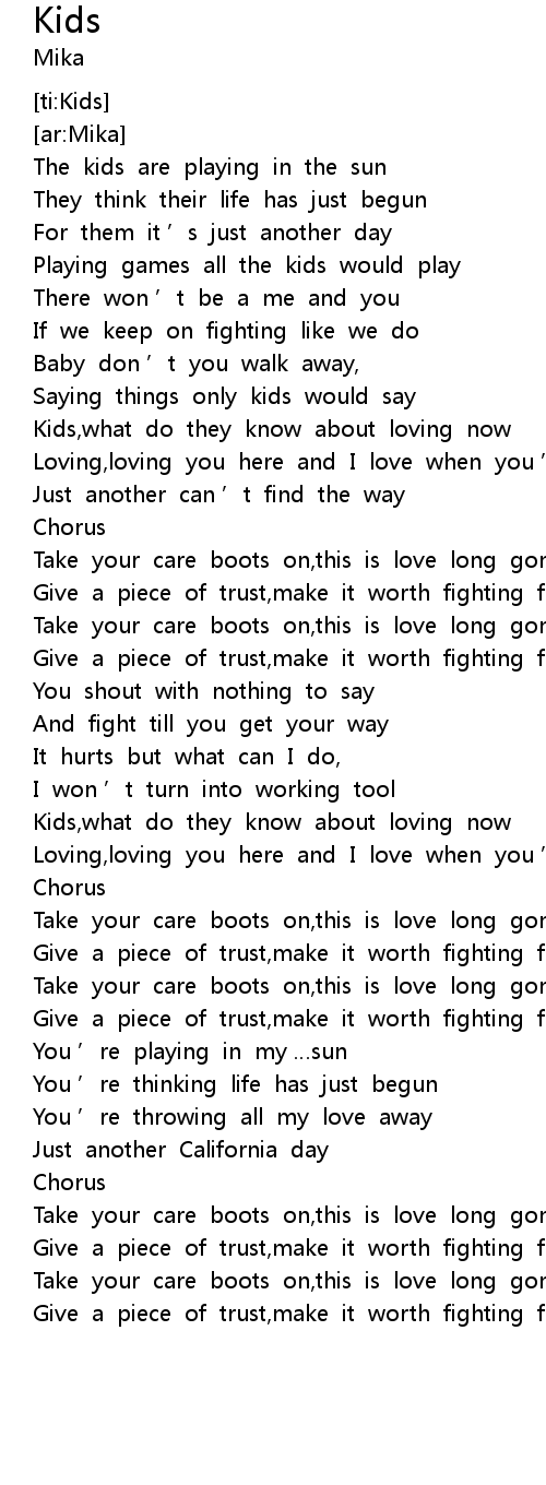 | [01:45.520] | Take your care boots on,this is love long gone |
