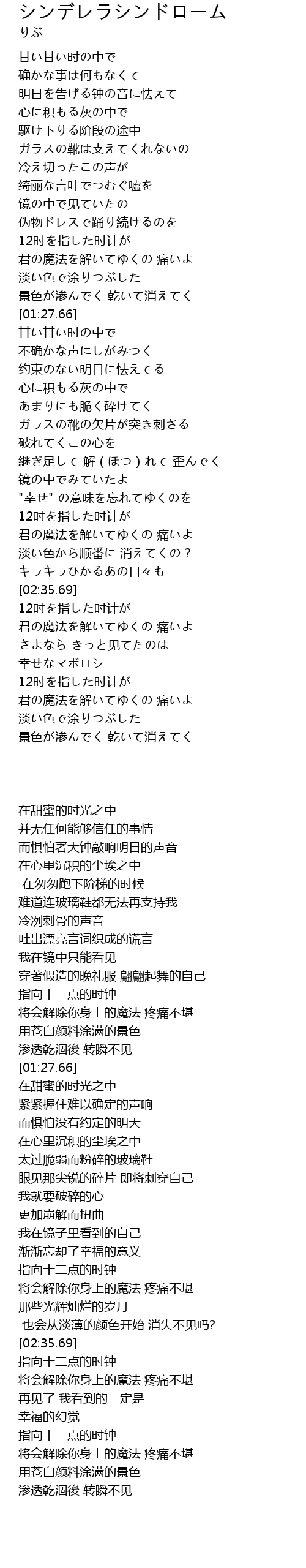 | [01:49.66] | ガラスの靴の欠片が突き刺さる |