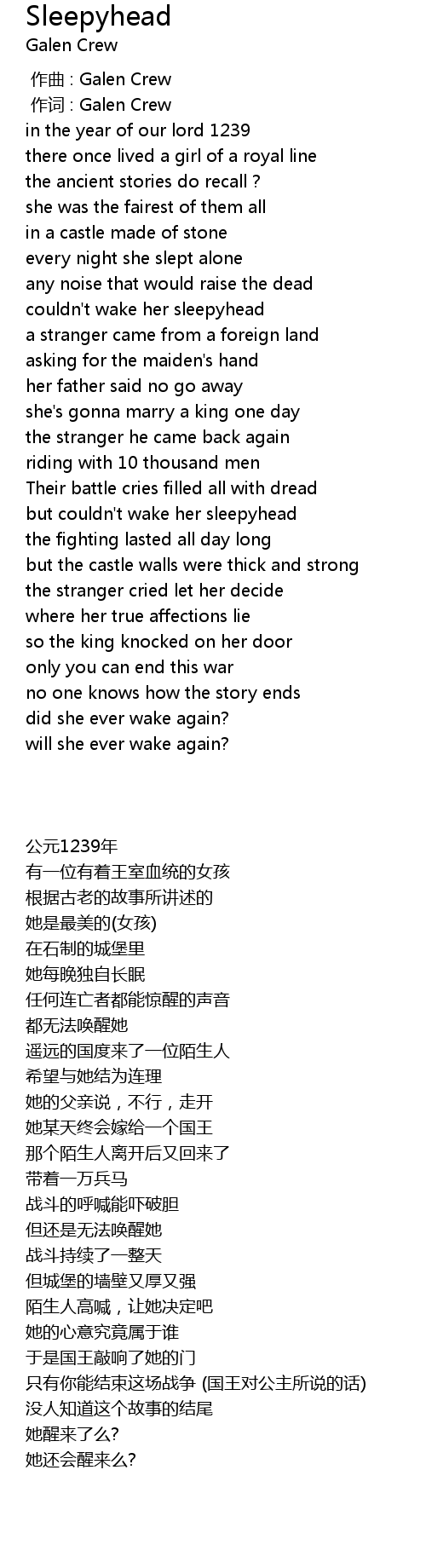 | [00:59.110] | couldn' t wake her sleepyhead |