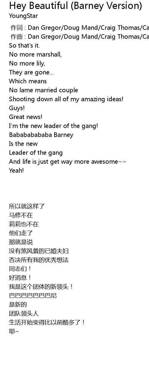 | [00:00.000] | 作词 : Dan Gregor/Doug Mand/Craig Thomas/Carter Bays |
