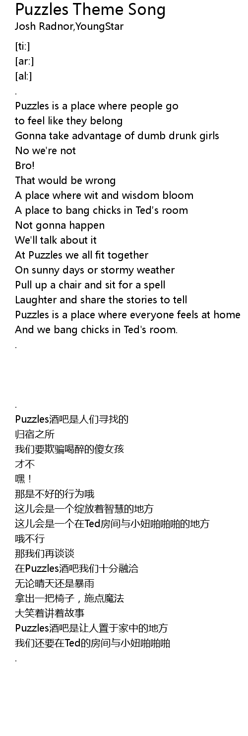 | [00:48.86] | Puzzles is a place where everyone feels at home |