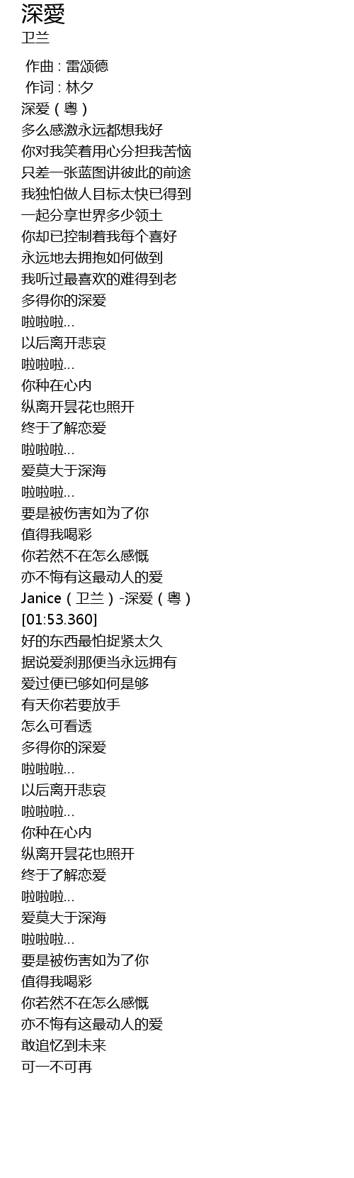 | [01:46.430] | Janice(卫兰)-深爱(粤) |