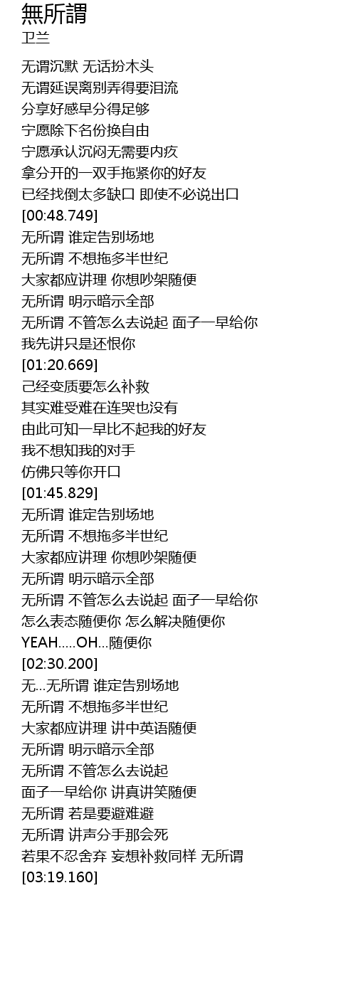 | [02:48.660] | 无所谓 明示暗示全部 |