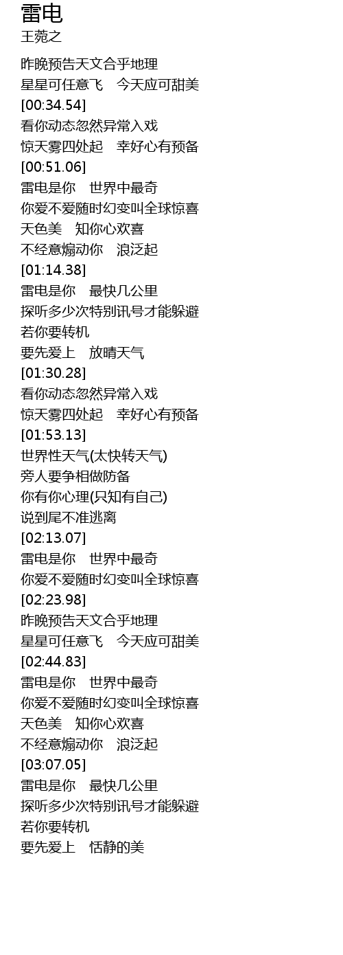 | [02:15.07] | 雷电是你 世界中最奇 |