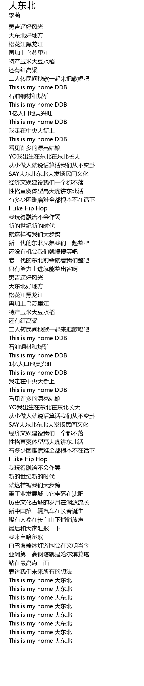 | [03:37.300] | This is my home 大东北 |