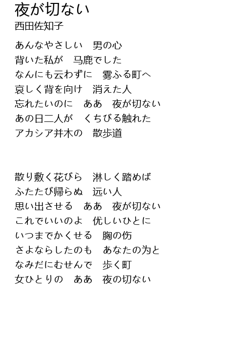 忘れたいのに ああ 夜が切ない |