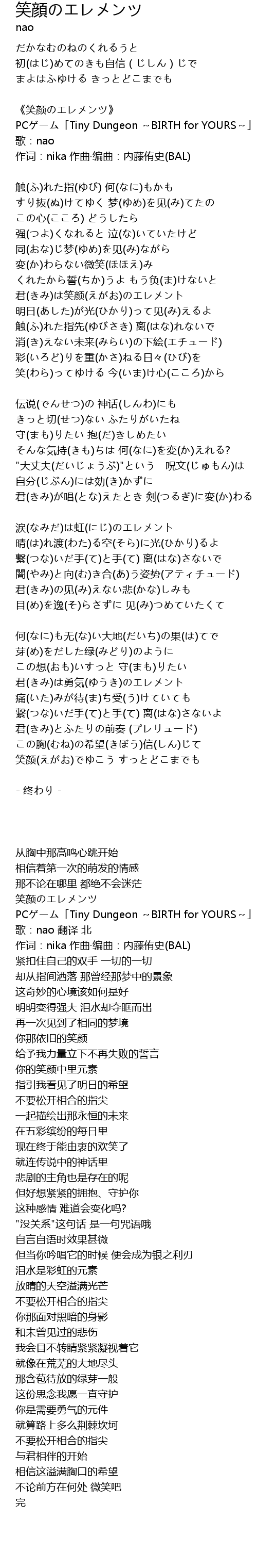 | [00:15.00] | 《笑颜のエレメンツ》 |