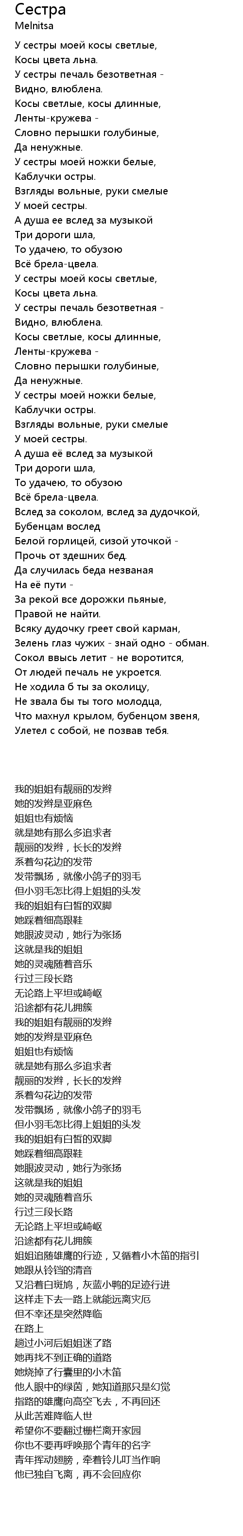 У сестры моей косы светлые, |