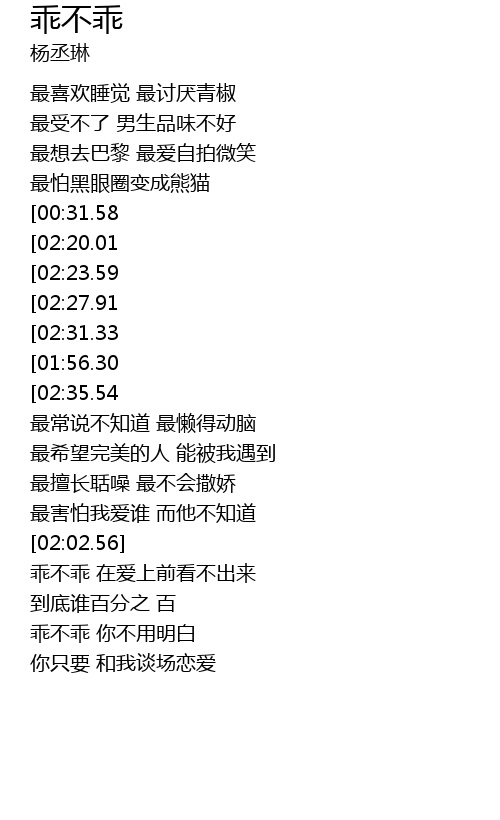 | [03:05.97][01:56.30][00:50.78] | wo guai bu guai guai bu guai |