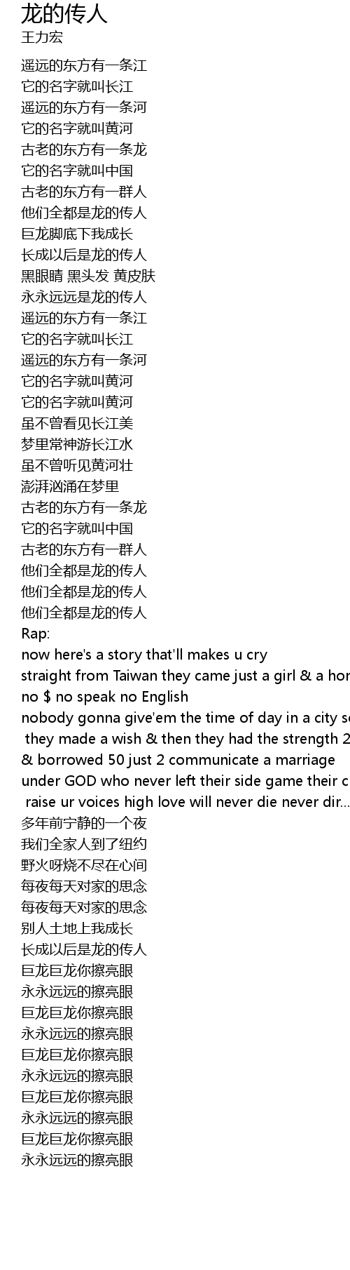 | [01:06.250] | cháng chéng yǐ hòu shì lóng de chuán rén |