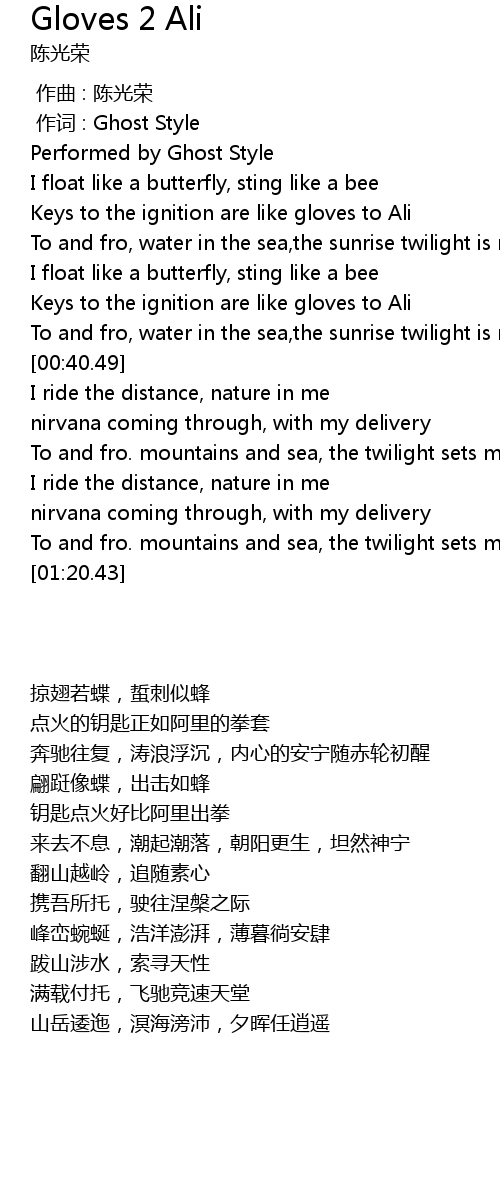 | [00:20.62] | I float like a butterfly, sting like a bee |