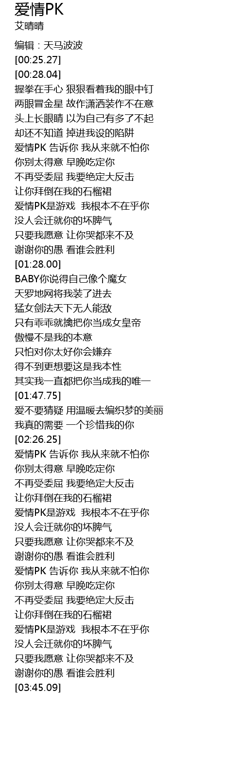 | [02:28.27] | 爱情PK 告诉你 我从来就不怕你 |