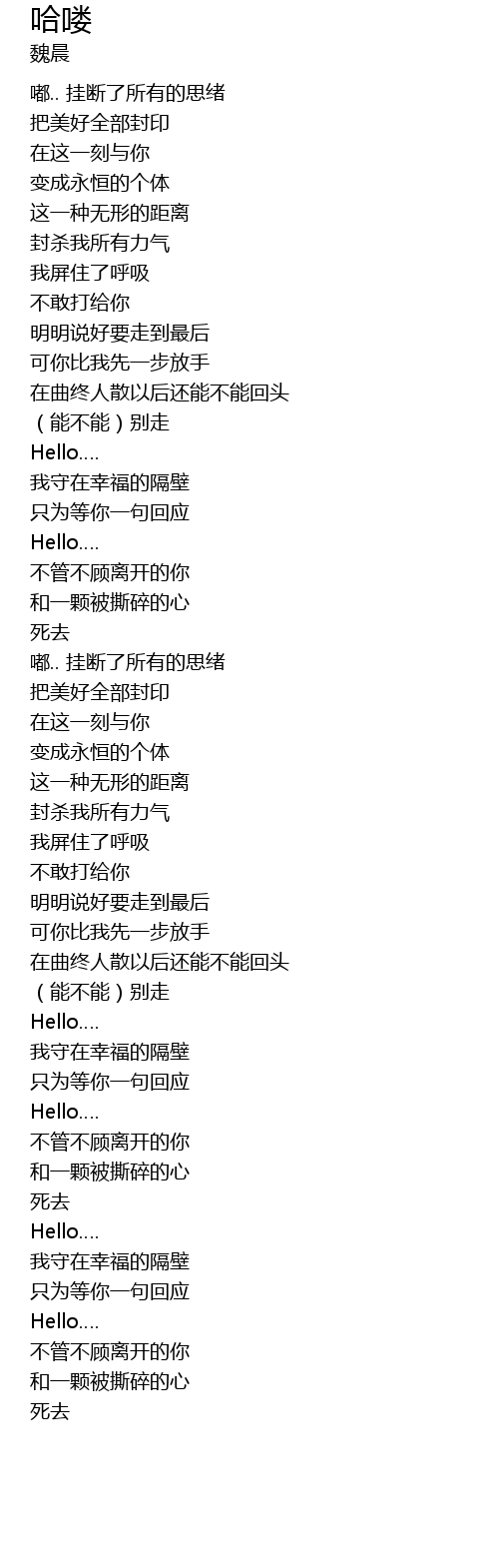 哈喽 ha lou Lyrics