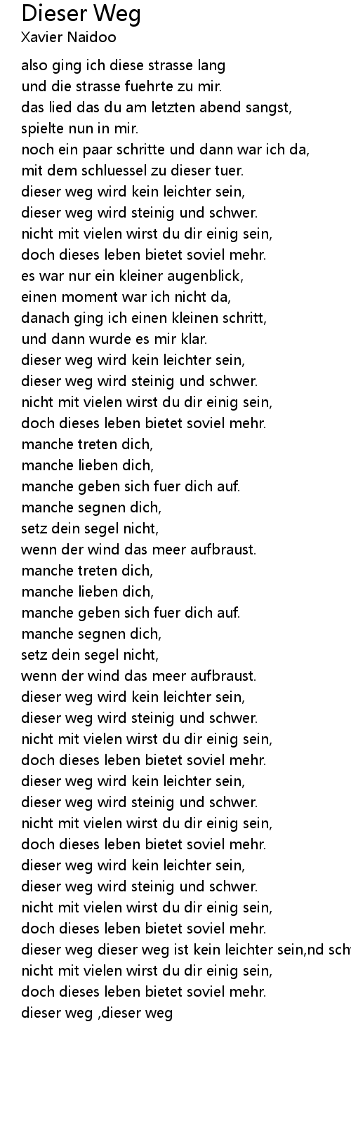 dieser weg dieser weg ist kein leichter sein,nd schwer. |