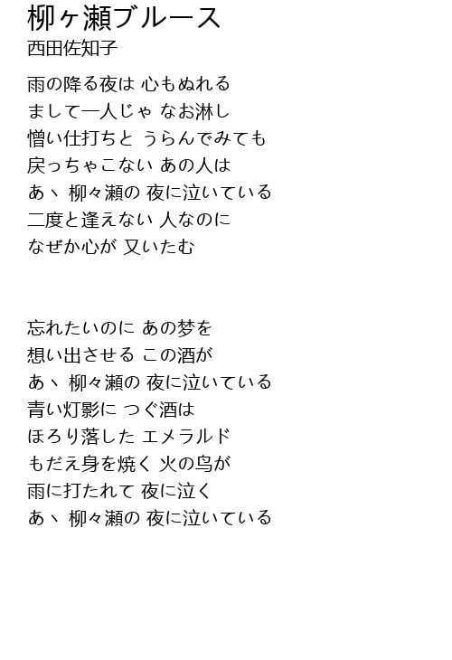 あヽ 柳々瀬の 夜に泣いている |