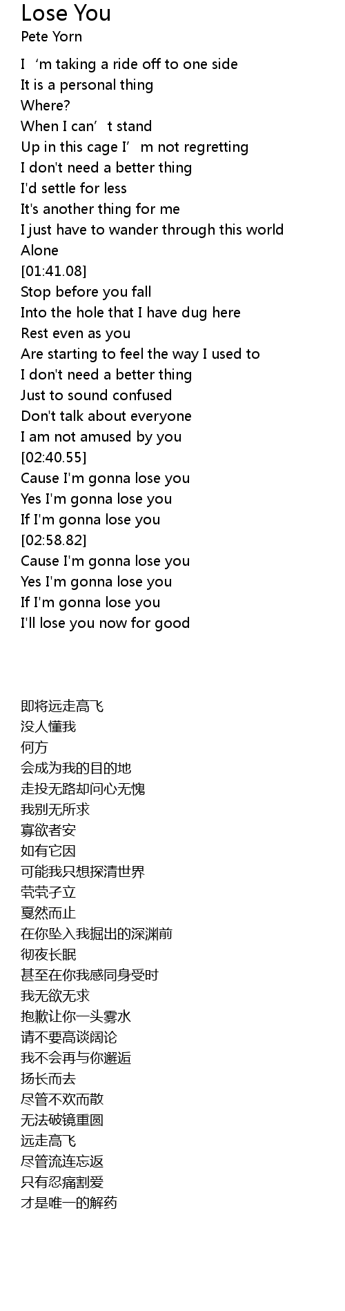 | [02:47.39] | Yes I' m gonna lose you |