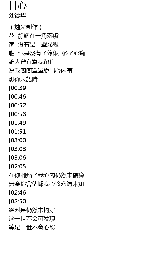 | [02:39] | 無奈你會佔據我心將永遠未知 |