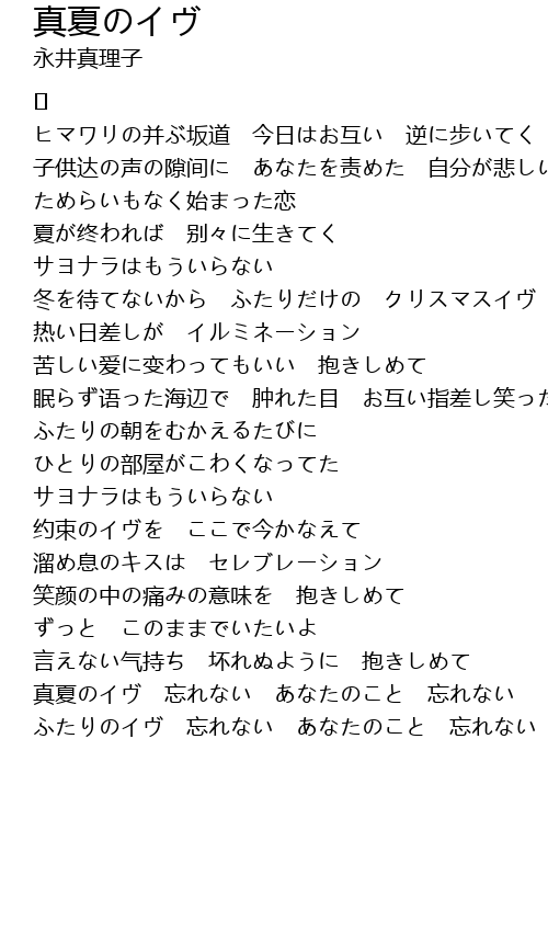 | 真夏のイヴ 忘れない あなたのこと 忘れない | |