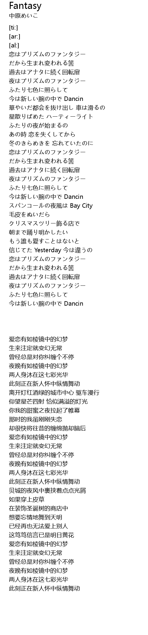 | [03:48.09] | 夜はプリズムのファンタジー |