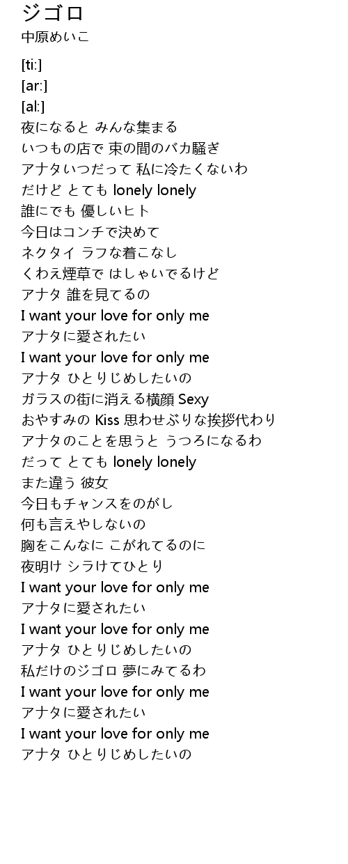 | [02:53.58] | 私だけのジゴロ 夢にみてるわ |