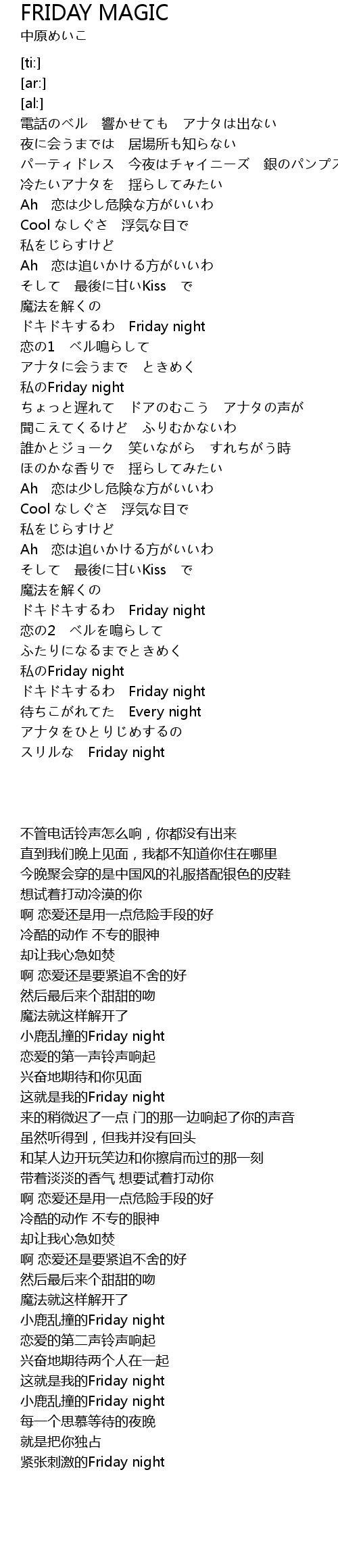 | [02:58.30] | ドキドキするわ Friday night |